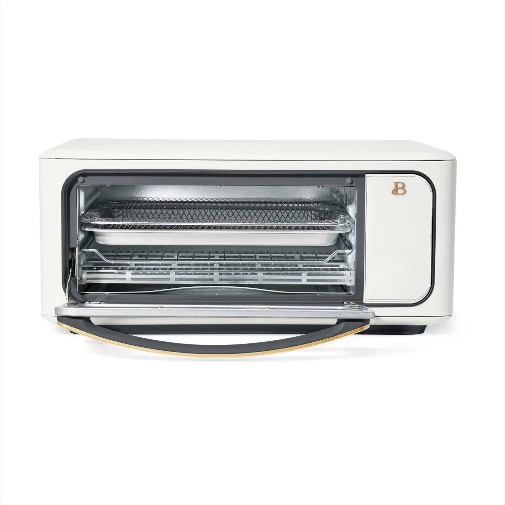 Embrace a world of possibilities with the Beautiful™ Digital Air Fry Toaster Oven with Infrared Technology. This compact yet versatile kitchen essential seamlessly integrates multiple functions and cooking techniques all in one sleek package. Its space-saving design can accommodate various food items, such as a 12" pizza, 9 slices of toast, or a 9x13" casserole dish. With 10 preset cooking functions, you can go from toasting to air frying, broiling, baking, and even pizza-making and more. Created combines elegant design, contemporary colors and modern silhouettes for high-performance appliances that look beautiful on your kitchen counter. Condition: new.