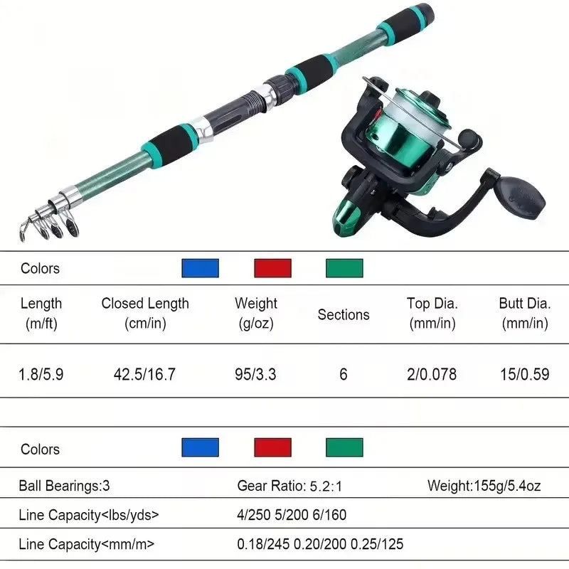 • Telescopic Fishing Rod :The telescopic fishing rod allows for easy and convenient storage, making it perfect for travel or on-the-go fishing.