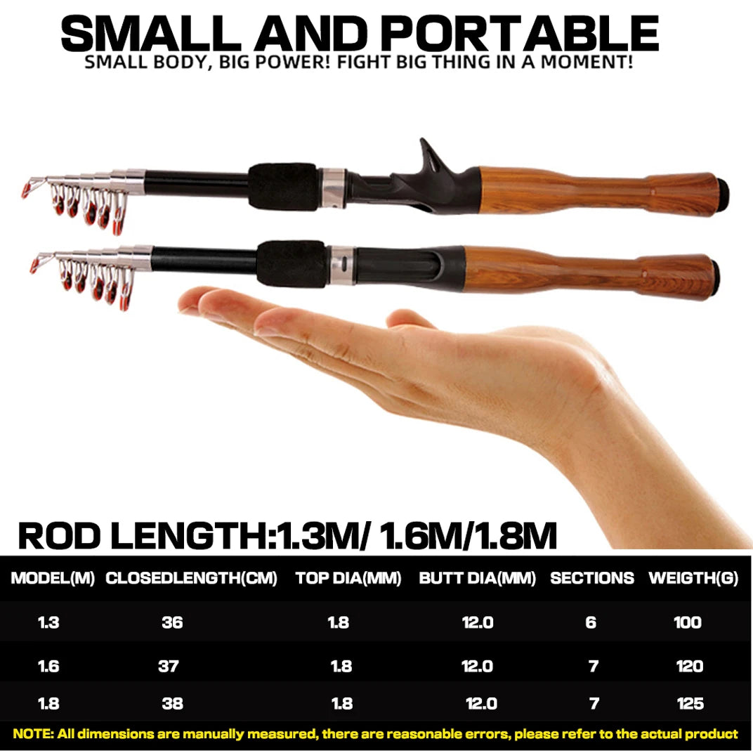 Lure Fishing Rod 1.3m 1.6m 1.8m Carbon Spinning Casting Baitcasting Mini Short Light Travel Lure Rod