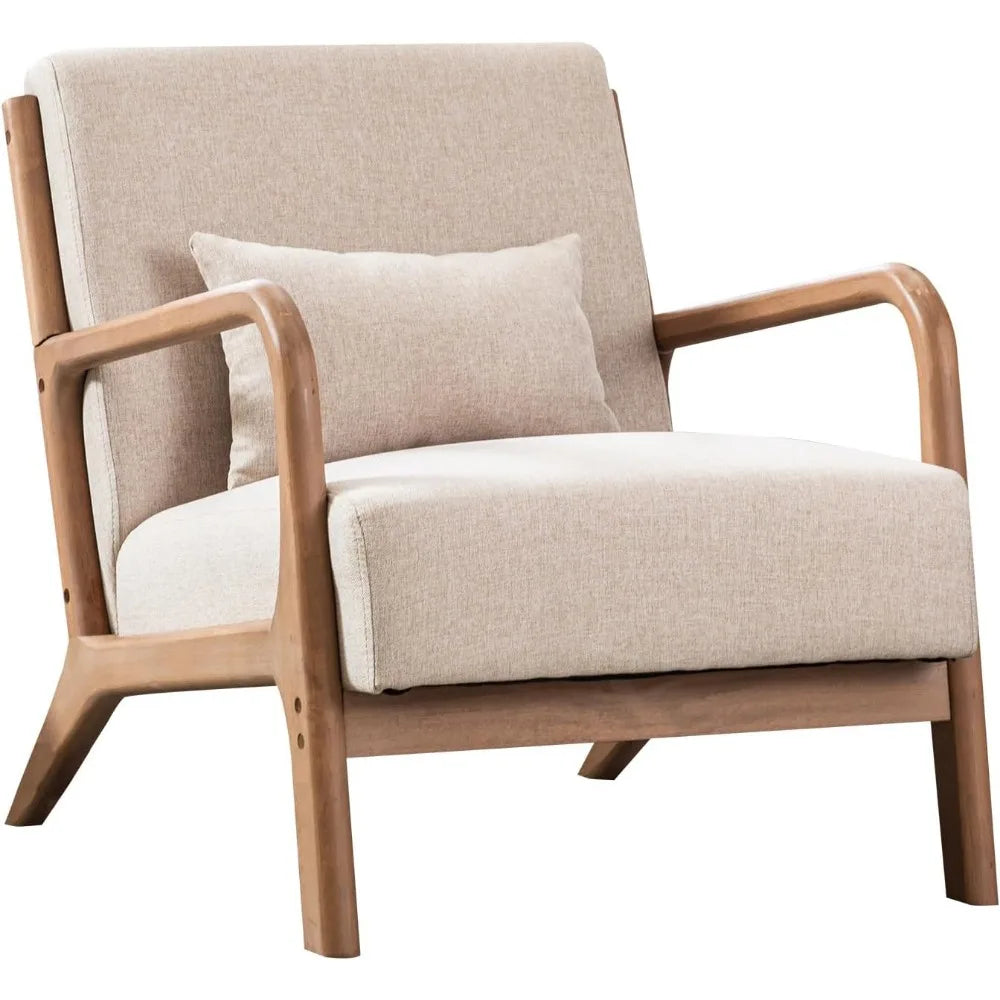 Mid Century Modern Accent Chair, Comfy Fabric Living Room Chairs with Solid Wood Frame, Lounge Reading Armchair, Easy As