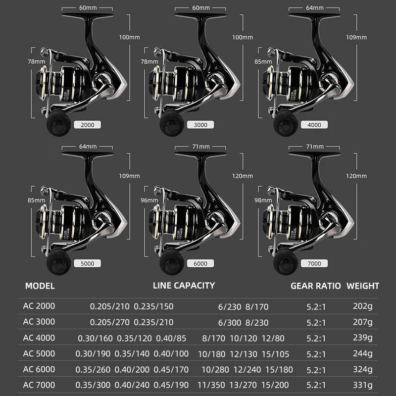 Spinning Reel Max Drag 8KG for Fishing AC3000 4000 5000 Reel Metal Spool Handle Sea Jig Carp Reel Fishing Coil Wheel